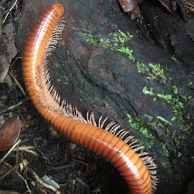 Pühapäeva hommikul ärkasime juba vara. Uimasime veits niisama ringi ja siis sõime hommikust, pakkisime asjad ning täiendasime veevarud (Elliel oli filtriga pump millega sai jõest vett filtreerida). Panime matkariided selga ja asjad autosse ning matk võis alata. No ütleme nii, et see oli kõige raskem matk mis mina teinud olen. Mitte ainult Malysias, vaid üleüldse :D. Meil oli ainult 2,5 tundi niimoodi üles mäge, et sildeat maad ei olnud kordagi. Sääremarjad ei olnud üldse rahul sellega, et koguaeg pidi astuma suuri astmeid ja turnima seal puude vahel. Pidin vahepeal ennast ikka kõvasti tagant utsitama, sest niisama kuskil seisma jäämine oleks ju olulisrlt kergem olnud. Aga tippu me jõudsime. Seal oli selline väike tripp, et jõudsid tippu aga siis pidi veel kõrgemale minema :P. Sellest ei saagi aru enne kui ise kohapeal ei ole. Ja sealt sai veel redelite abiga üles kiva peale ronida ja suurepärast vaadet näha. Kõik oli kõike väärt!! Pidasime seal allpool tipus piknikku, käisime verl kunagise briti maja varemeid vaatamas ning siis hakkasime tagasi all minema. No siis tuli järgmine katsumus. Ega mis see all pole ju minna. Aga proovi sa niimodi järsust mäest alla minna, kui su matkrada on jõeks muutunud. Nimelt hakks täpselt siis paduvihma sadama kui mrie alla hakksime minema. Ja sadas tugevat paduvihma terve see poolteist tundi kui me all kõndisime. Alla jõudsime olime nii läbimärjad, et veeall oleks ka kuivemaks jäänud. Tossud lirtsusid ja riided olid nii keha vastas, et seljast ära võtmine oli omaette ooper. Ärge siiski saage valesti aru, mulle tohutult meeldis! Tõesti oli super äge. Kui vihm oli veitsa järgi jäänud ja saime riided vahetatud ning autosse istutud, sõitsime tagasi KL-i poole ja sõime koos õhtusööki ning saingi koju. Oligi see vägev loodusekeskne nädalavahetus läbi!